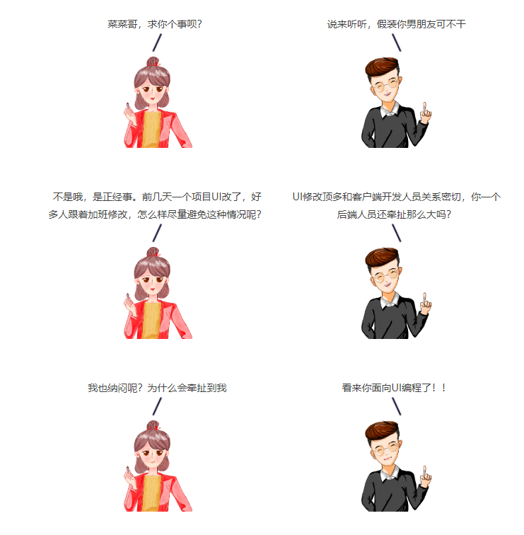 为何喷起此次话题,因为前不久和我们首席架构师沟通,谈起程序设计问题,一不小心把UI扯进来,更把那些按照UI来编程的后台工程师也扯了进来。今天特意百度了一下(其实程序员应该去google一下,奈何需要FQ),确实没有面向UI编程这个概念在市面上流传,大家可以当我是首创吧。需要声明一点,这里喷的是服务器开发人员哦!!