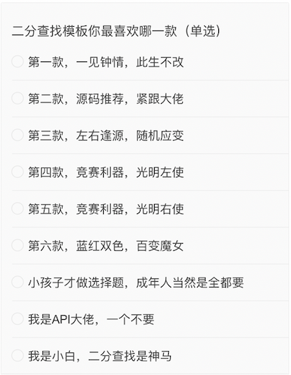 六款二分查找模板,哪款才是你的菜?投票活动。