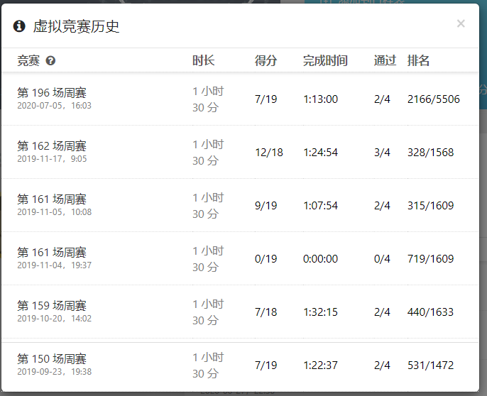正式比赛能否像虚拟竞赛这样统一查看自己参加过的比赛的信息